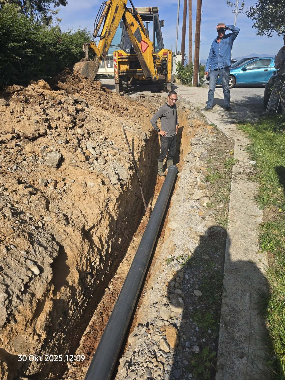 Συμπλήρωση του αρδευτικού μας δικτύου με την κατασκευή ενός bypass μεταξύ των δύο αρδευτικών αξόνων στην περιοχή Ισμαήλ - Συνταγή Γιαγιάς.