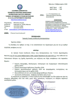 Τις διατάξεις του άρθρου 12 παρ. 2 του καταστατικού του Οργανισμού μας και την με αριθμό 018/2026, απόφαση του Δ.Σ.